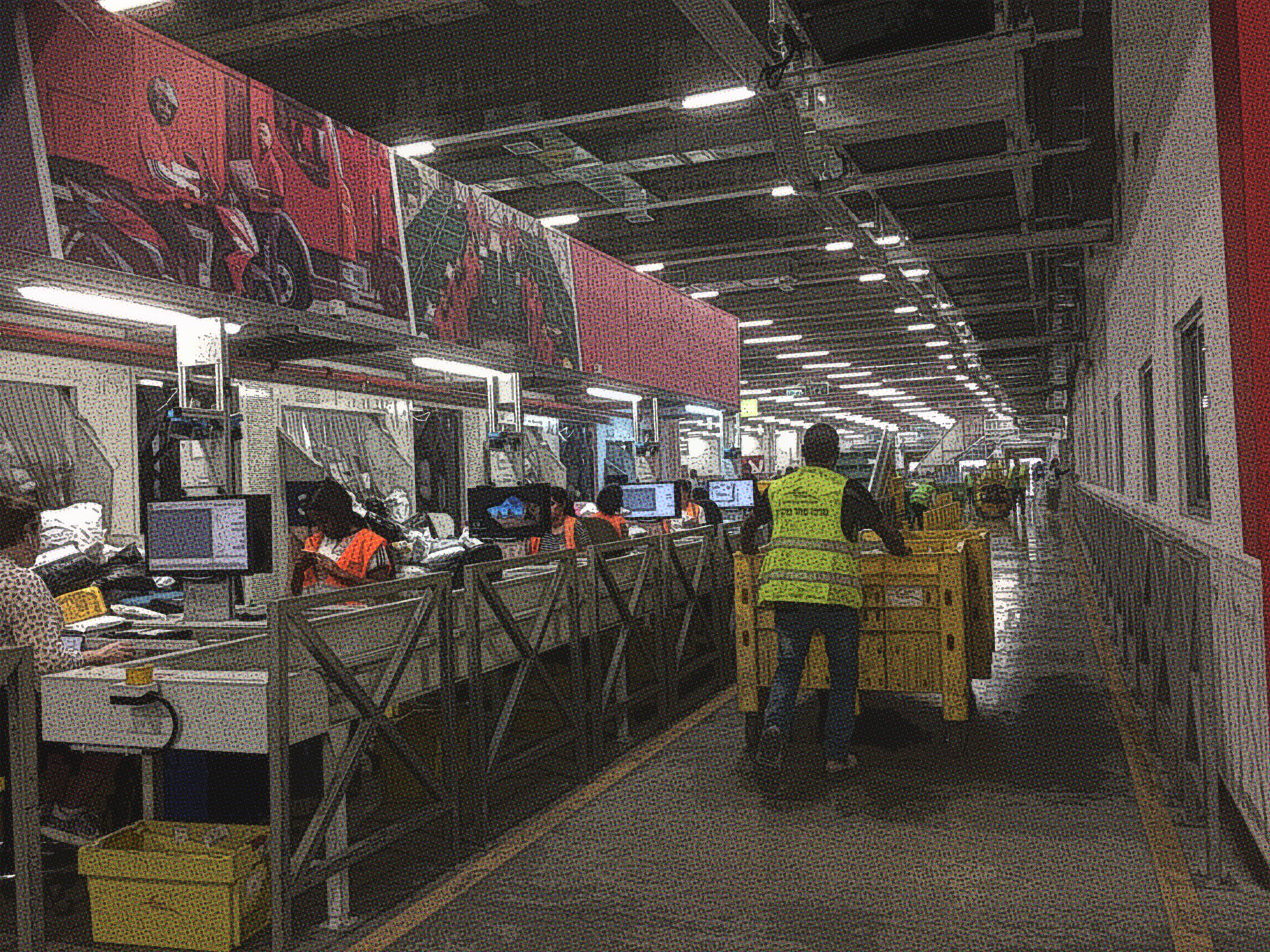 Tres turnos de noventa mujeres frente a una máquina procesamos envíos de compras por internet. Es un mundo de lugares, marcas y nombres sin rostro. Un universo en el que solo existen calles y ciudades, o más bien pueblos. Doscientos cincuenta paquetes por hora es la meta. Hay quienes logran más. La mayoría nunca alcanzamos a llegar.