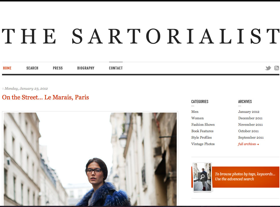Thesartorialist.com. Quizás el más emblemático de estos fotógrafos de la calle sea Scott Schuman, quien comenzó a postear sus fotos de estilo callejero neoyorquino en 2005. Hoy su blog es un sitio de culto para los aficionados al tema, además de haber convertido a su autor en uno de los más reconocidos fotógrafos del mundo de la moda, gracias a lo cual puede recorrer el planeta con su cámara y ofrecer imágenes de lugares muy alejados de su Nueva York original.